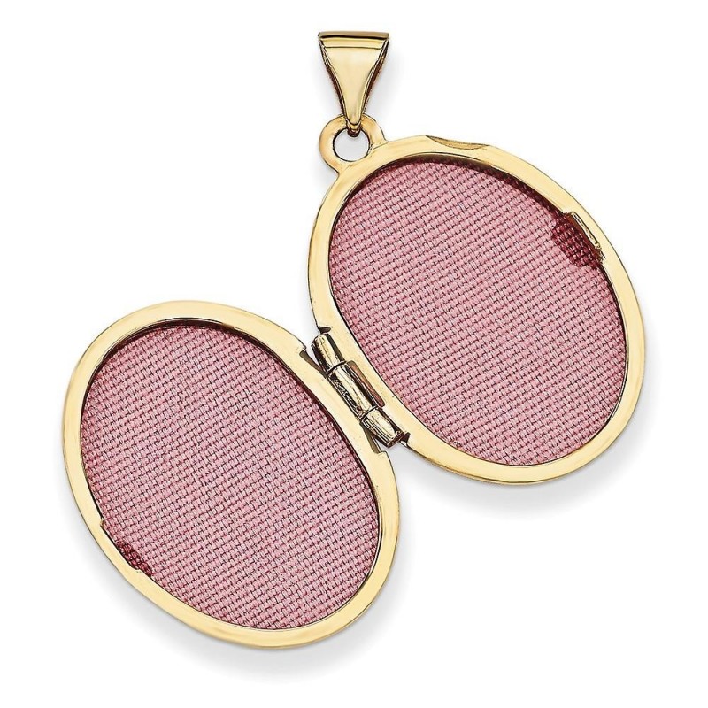 Ovale hanger van 14 karaat geelgoud, gepolijst, met twee foto's en "Feelings" op de achter