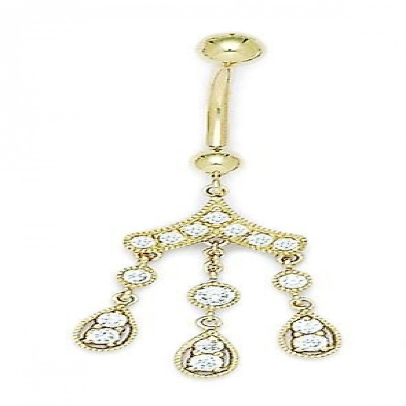 14k geelgouden hangende lichaamssieraad met kubieke zirkonia en diamanten
