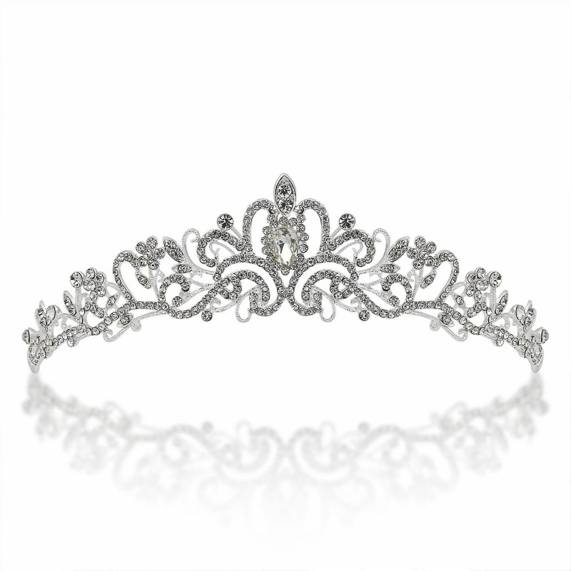Bruidstiara, zilver, metaal met kristallen, 16 x 22 x 4,5 cm
