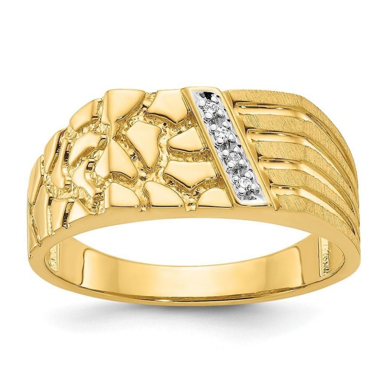 Herenring van 10 karaat goud met gepolijste diamant, maat 10,00. Sieradencadeau.