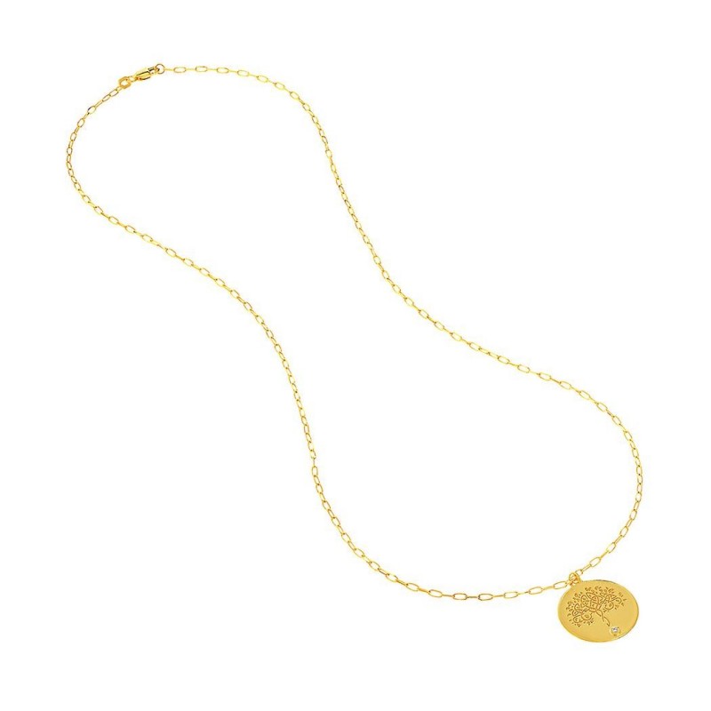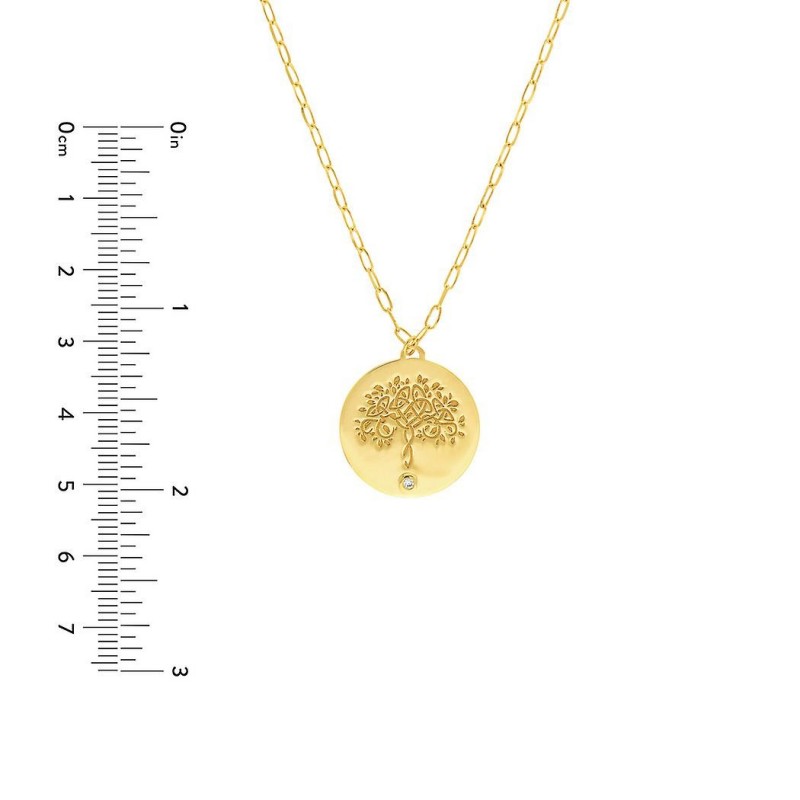 Verstelbare hanger van 14 karaat geelgoud met een 0,015 karaat diamanten Levensboom-medaillon