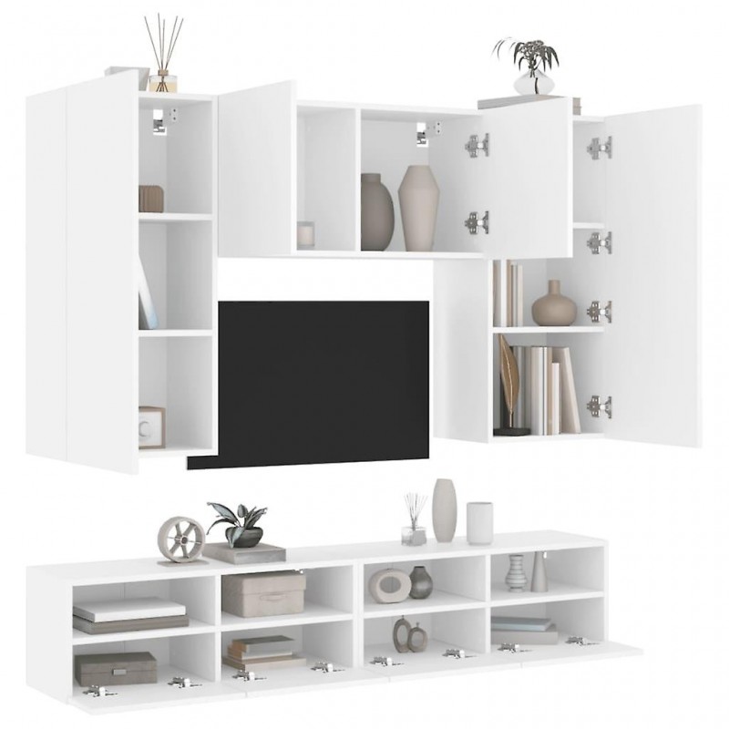 Deze tv-meubels voor aan de muur bieden een ideale oplossing om extra opbergruimte in uw woonkamer te creëren en uw spullen georganiseerd te houden. Duurzaam materiaal: Hout is een hoogwaardig materiaal met een glad oppervlak, dat duurzaam, stabiel en vochtbestendig is. Wandmontage: Het tv-meubel kan aan de muur worden bevestigd voor extra opbergruimte. Zo kunt u uw vloeroppervlak optimaal benutten en uw kamer georganiseerd houden. De tv-meubelset voor aan de muur biedt diverse opbergmogelijkheden en voldoende ruimte om boeken, dvd's, tijdschriften, media en andere dagelijkse spullen georganiseerd en binnen handbereik te houden. Veelzijdig ontwerp: U kunt de kast als tv-meubel gebruiken of aan de muur in uw kantoor bevestigen om gemakkelijk gadgets of andere items op te bergen. Het verandert ook een lege muur in een uniek kunstwerk. Nuttige informatie: Schroeven en muurpluggen voor binnen zijn niet inbegrepen. Wij raden aan schroeven en pluggen te gebruiken die speciaal voor uw muren zijn ontworpen. Neem bij vragen contact op met een gekwalificeerde technicus. Lees en volg elke stap van de instructies.