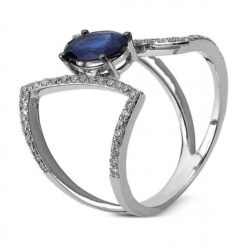 Luna Creation ring - 14 karaat witgoud met diamanten en 0,23 ct blauwe saffier - 1B684W