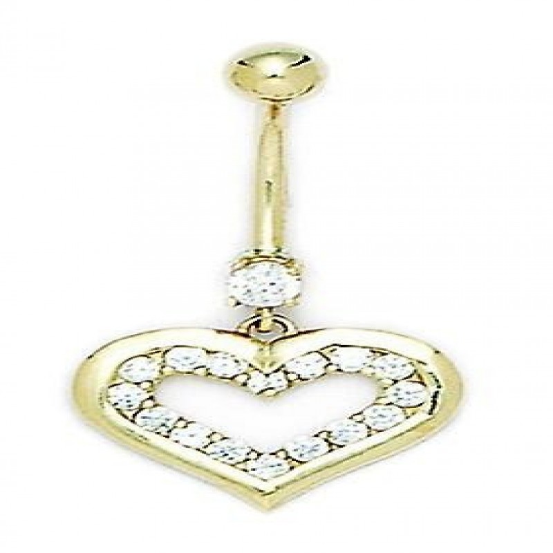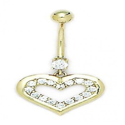 14k geelgouden lichaamssieraad met kubieke zirkonia, 14 gauge, hartvormige hanger, 33 x 17 mm, 14k geelgoud, klaar om cadeau te doen. [Mogelijke accessoires: kubieke zirkonia] - Synthetische materialen. Sommige zijn verguld met een materiaal dat de duurzaamheid van de steen vergroot. [Verzorging en behandeling: kubieke zirkonia] - Reinigen met warm zeepsop en een zachte doek.