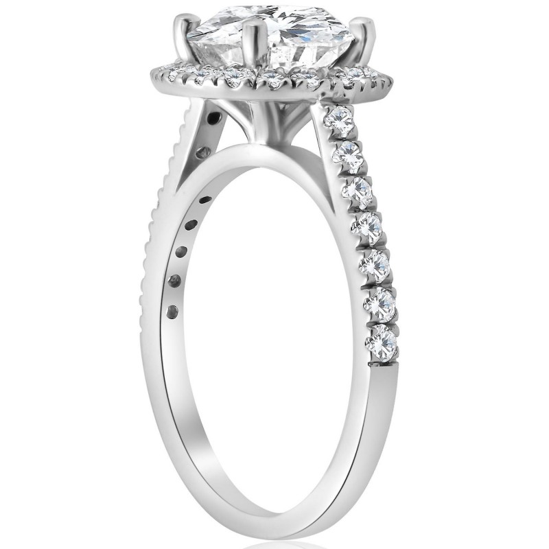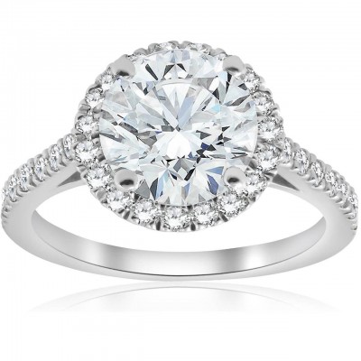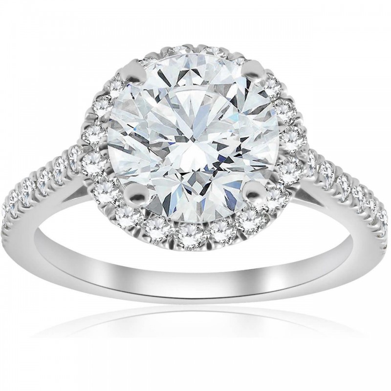 Verlovingsring van 14 karaat witgoud met een ronde halo-geslepen diamant van 2 1/2 karaat