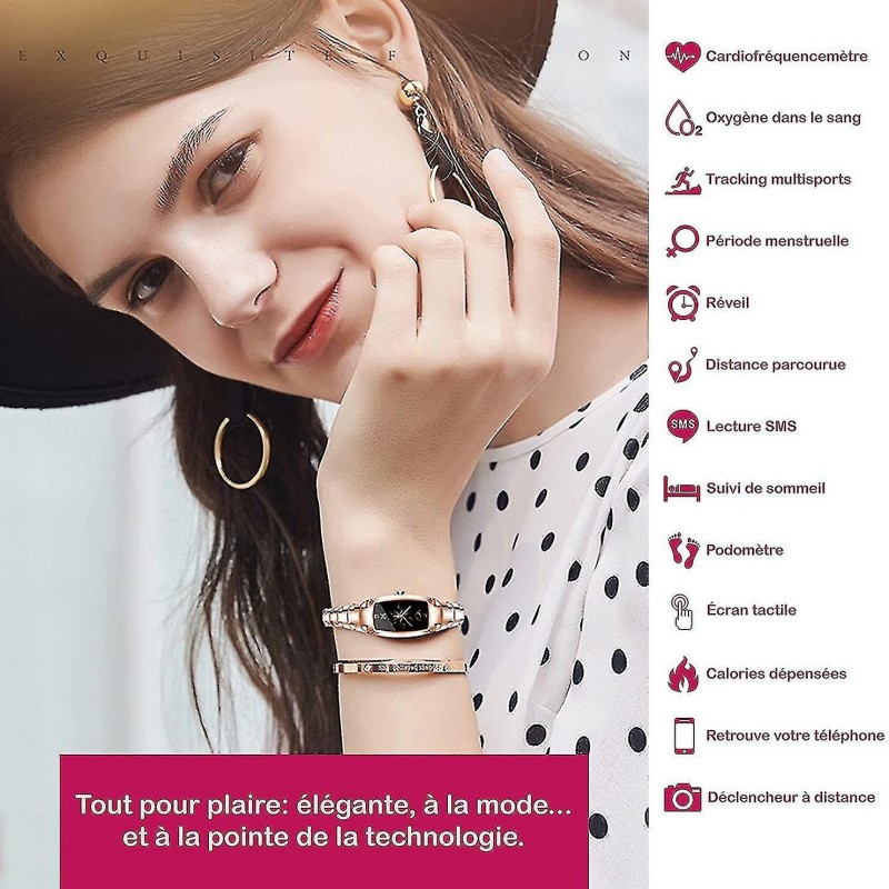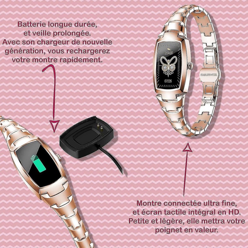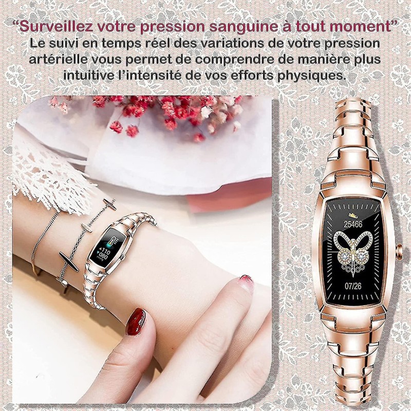 Smartwatch en gezondheidsmonitor: Met deze smartwatch kunt u uw dagelijkse activiteiten nauwkeurig registreren, zoals stappen, afstand, verbrande calorieën, hartslag, slaapstatus en meer. Deze smartwatch ondersteunt meerdere sportmodi. Iets om u de hele dag gemotiveerd te houden. Deze smartwatch is een geweldig cadeau. Oproep- en berichtmeldingen: Deze smartwatch (roségoud of zilver) trilt wanneer u oproepen of berichten ontvangt (Facebook, Twitter, WhatsApp, LINE, Skype, Twitter, WeChat, enz.). U kunt de inhoud van het bericht direct op het horloge zien. Als u bezig bent, kunt u direct ophangen. Dit stijlvolle, hightech IP67-geclassificeerde dameshorloge beschikt over enkele van de slimste functies op de markt, zoals gesynchroniseerde weersvoorspellingen, herinneringen voor sedentaire activiteiten, een trillende wekker, volledige controle over muziek en camera, telefoonbediening via het horlogescherm, een stopwatch, helderheidsregeling (til uw pols op om het scherm te verlichten), magnetisch snelladen en meer. Meer dan alleen een dameshorloge! Dit slimme horloge heeft een 1,09 inch (2,54 cm) high-definition IPS-touchscreen en is gemaakt van roestvrij staal voor een betere gebruikerservaring, en heeft een stijlvolle uitstraling. Het meet ook de bloeddruk, het zuurstofgehalte in het bloed en de menstruatiecyclus, voor een uitgebreide monitoring. De batterij gaat lang mee en is breed compatibel. Het Bluetooth-horloge voor dames is compatibel met Android 4.4 en iOS 8.0 en hoger (vereist Bluetooth 4.0 en hoger). Het is alleen geschikt voor verbinding met smartphones, niet met computers, iPads of tablets. Scan de QR-code of download/installeer de "F Fit"-app uit de app store van je telefoon. Open de app en schakel Bluetooth in. Klik op "Apparaat toevoegen" en selecteer je horloge. Veel plezier.