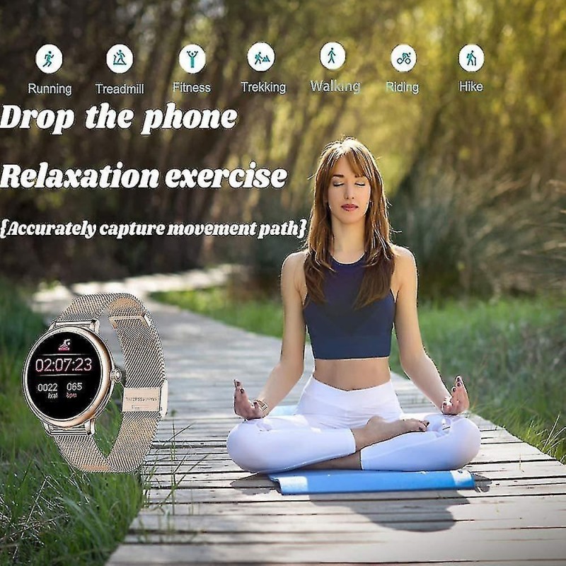Volledig waterdicht touchscreen smartwatch Het stijlvolle uiterlijk van dit volledig touchscreen smartwatch is het beste cadeau voor vrouwen. Het meet hartslag, bloeddruk, slaapmonitoring, vrouwelijke fysiologische cyclus, stappenteller, trainingskilometers, calorieverbruik, afstandsregistratie, sedentaire herinneringen en vele sportmodi, enz. Het is waterdicht, zweetbestendig en regenbestendig voor het dagelijks leven. 8 sportmodi en IP67 waterbestendigheid Volg uw activiteiten de hele dag, inclusief stappen, afstand en verbrande calorieën. 8 sportmodi bewaken uw bewegingsgegevens om uw training aan te passen. U kunt hardlopen, fietsen, voetballen, enz. U kunt uw bewegingen in het zwembad volgen en het gebruiken onder een koude douche. Meldingen en sms-berichten Ontvang oproepen, sms-berichten, SNS-berichten, Facebook, WhatsApp, Twitter, Instagram, enz. Wanneer u een melding ontvangt, trilt het horloge om u eraan te herinneren. Verbind de armband eenvoudig via de app met uw telefoon en stel deze in de app in. U zult geen oproepen of berichten missen. Hartslagmeter en slaapmonitor: Met ingebouwde slimme optische sensoren bewaakt de activity tracker je hartslag in realtime en detecteert deze automatisch. Bovendien monitort hij effectief je slaapkwaliteit en biedt hij uitgebreide analyses om je te helpen een gezonde levensstijl aan te nemen. Compatibiliteit en andere functies: Dit horloge is compatibel met smartphones met iOS 9.0 / Android 4.4 of hoger en Bluetooth 4.0 of hoger. Dit horloge beschikt ook over een alarm, stopwatch, camerabediening op afstand, weersvoorspelling en helderheidsregeling. (Niet compatibel met iPad)
