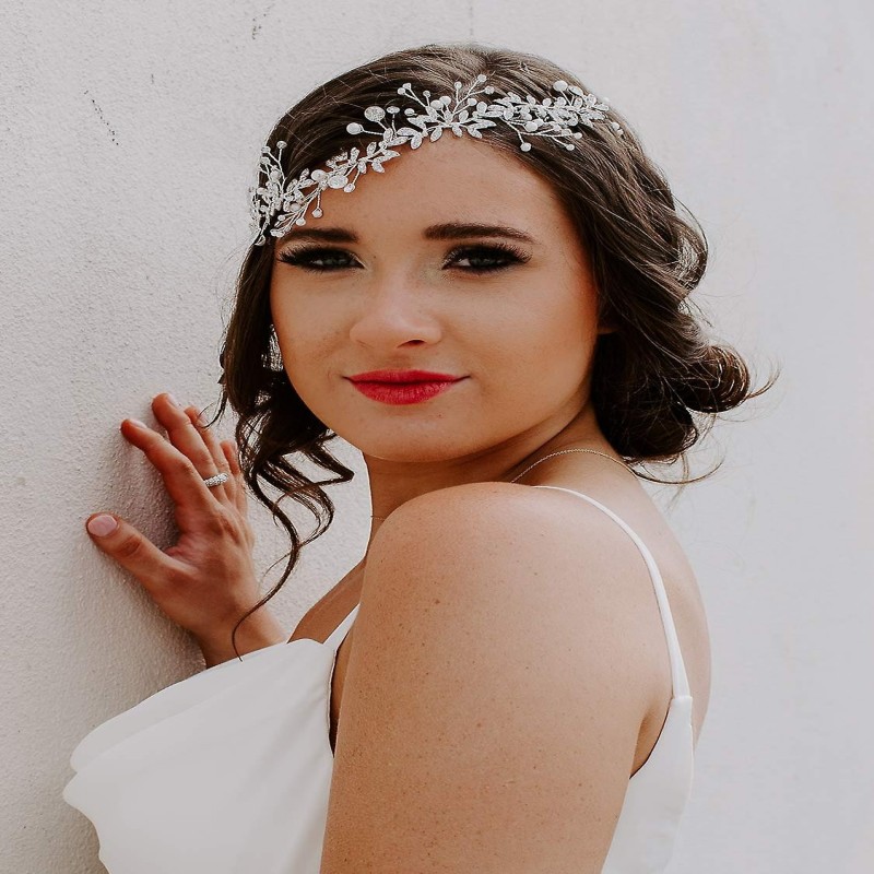 Een elegant bruidshaaraccessoire. De met strass-steentjes versierde takken en bloemen staan prachtig bij een witte of ivoorkleurige jurk. Ze passen perfect bij je romantische kapsel.